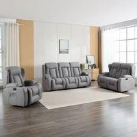 The Caesar Electric Recliner Sofa Set is the ultimate luxury statement. Part of our Premier sofa collection, this stunning, comfy sofa is covered in gorgeous Technology Fabric, a fabric with a leather like feel, and has deeply padded seats, armrests and a high back. With handy drinks holders at either end on all of the chairs, this reclining sofa is the perfect choice for family movie nights and enjoying some quality time together. Press the button on the side to recline the seats individually when you ... - Manufacturers part number: KIT-RC1+2+3-TECH-M-CAES-GRY