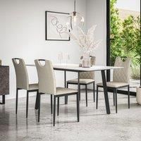The Haydon Dining Table is a beautifully crafted rectangle dining table with a timeless, minimalist design. The table boasts an elegant hardwearing, scratch resistant White Marble effect table top that brings warmth and natural charm to any dining space, perfectly complemented by unique, sturdy, solid Black metal legs for a modern contrast. The easy-to operate butterfly extending mechanism is perfect when youre in need of space saving. The Haydon's simple yet sophisticated design makes it a versatile c... - Manufacturers part number: KIT-SET-HAY-WM-BK-MON4-LN-BEI