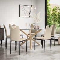 The Malvern Dining Table is a beautifully crafted round dining table with a timeless, minimalist design. The table boasts an elegant Clear Glass table top that brings warmth and natural charm to any dining space, perfectly complemented by sturdy solid oak legs for a modern contrast. The Malvern's simple yet sophisticated design makes it a versatile centrepiece, ideal for both casual meals and formal gatherings. The Malvern Dining Table can seat 4-6 people, and yet its compact round shape is perfect for... - Manufacturers part number: KIT-SET-MAL-GLS-OK-MON6-FL-BEI
