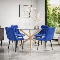 The Malvern Dining Table is a beautifully crafted round dining table with a timeless, minimalist design. The table boasts an elegant Clear Glass table top that brings warmth and natural charm to any dining space, perfectly complemented by sturdy solid oak legs for a modern contrast. The Malvern's simple yet sophisticated design makes it a versatile centrepiece, ideal for both casual meals and formal gatherings. The Malvern Dining Table can seat 4-6 people, and yet its compact round shape is perfect for... - Manufacturers part number: KIT-SET-MAL-GLS-OK-NOV4-VL-BLU