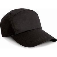 100% Cotton twill. 7 panel. Full profile. Pre-curved peak with 2 stitched lines. Wide front supported panel. Stitched eyelets. Snap closing size adjuster. No centre seam - Ideal for embroidery & print. Weight: 190g/m. | Result Men Plain Baseball Cap in Black