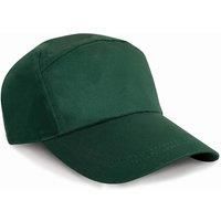 100% Cotton twill. 7 panel. Full profile. Pre-curved peak with 2 stitched lines. Wide front supported panel. Stitched eyelets. Snap closing size adjuster. No centre seam - Ideal for embroidery & print. Weight: 190g/m. | Result Men Plain Baseball Cap in Bottle Green