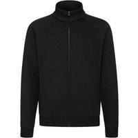 With its covered metal zip for enhanced printability and two welt front pockets for multipurpose use, the classic sweat jacket is ideal for all kinds of garment dration. Details include a single jersey back neck tape for comfort, a ribbed waist and cuffs, and a cadet collar for added warmth. | Fruit of the Loom Men's Full Zip Sweat Jacket in Black | Size: Medium - Manufacturers part number: UTBC370_2