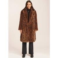Gini London Women's Brown Leopard Double Breasted Longline Furcoat | Size: Large/XL
