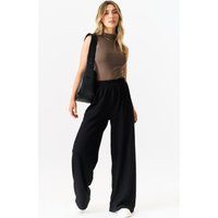 Effortlessly stylish, these black textured trousers feature an elastic waist for a comfortable yet flattering fit. Perfect for any occasion, they can easily be dressed up or down to suit your fashion needs. Say goodbye to uncomfortable waistbands and hello to effortlessly chic style. | Gini London Women's Black Textured Elastic Waist Pull On Trousers | Size: Small/Medium - Manufacturers part number: Gini London_5055753992114