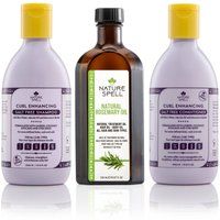Transform your hair care routine with Nature Spell's Curl Enhancing Shampoo and Conditioner Duo. This carefully crafted set is designed to nurture your curls, adding definition, volume, and shine while ensuring they are soft, hydrated, and manageable. Also included is our versatile Rosemary Oil, carefully formulated to promote a healthy scalp. Our Rosemary Oil is pre-diluted and carefully balanced to harness the best of Mother Nature. | Nature Spell Curl & Grow Set Rosemary Oil Curl Enhancing Shampoo & Conditione in Purple - Manufacturers part number: Nature Spell_5055757873297