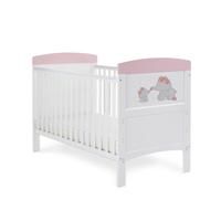 This Me & Mini Me Obaby Grace Inspire Cot Bed is a beautiful addition to their nursery. Balancing style with simplicity, this Grace Inspire Cot Bed symbolises the special bond between you and your "Mini Me" with a beautiful elephant design and cute pink end tops. This cot features an adjustable 3-position mattress base, which can be lowered as they grow. This puts less strain on your back in the early days, and allows you to keep them safe and secure as they find their feet. The addition of teething r... - Manufacturers part numbers: 21OB1733|30999016