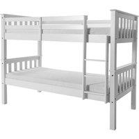 Save space in your bedroom or spare room with the Porto Pine Bunk Bed. This bunk has a simple and classic design with a white painted finish and slatted headboard and footend that will look beautiful in any room. Sleeping up to two children or adults, this compact bunk is perfect for shared rooms to allow more floorspace or to provide an extra bed for sleepovers. Crafted from solid pine wood this bunk is very sturdy and will withstand plenty of use. The bunk has a fixed ladder with wide steps for safety...