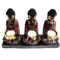 Antique Buddha - Three Devotees Candle Holder features a beautiful design, perfect for enhancing any home, restaurant, or meditation space. Bring a sense of Zen into your space with these elegant Antique Buddha Collectables, and let them become a focal point in your room. Relax and add this unique piece to your collection today. | KDMD Antique Buddha - Three Devotees Candle Holder in Red - Manufacturers part number: ABC-03