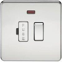 The Knightsbridge SF6300NPC Screwless switched fused spur unit or fused connection unit with neon in Polished Chrome. An electrical switch with a built in fuse, designed for appliances that do not have or require a fused plug top. This model is 13 Amp rated with Neon. Fused spur units are also used for high powered electrical equipment with heavy continuous loads, so that the appliance can be isolated by a single cable from a ring main for safety and maintenance purposes. The decorative plate features an easy clip on cover with internal gasket for moisture protection and matching screws. It has an ultra slim profile and is made from high quality ultra slim, premium grade material and complete with integral gasket. A light weight and compact unit with measurements Width 87.5mm x Height 87.5mm with a minimum mounting depth of 25mm. Complies to all relevant safety standards and comes with a 15 year manufacturer guarantee. This product is also available in Brushed Chrome,&... - Manufacturers part numbers: Knightsbridge_SF6300NPC|SF6300NPC