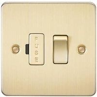 Fused spur solution in Flat Plate low profile metal design with matching fuse holder. - 13A rated- Switched- Ultra low profile design with built in gasket- Certified to BS 1363-4- Minimum mounting box depth 25mmSpecification: Projection (mm): 2.5Min. Mounting Box Depth (mm): 25mmConstruction: Premium grade steelFinish: Brushed BrassIP Rating: IP20Primary Voltage: 230V 50HzEarth Terminal: YesNeon Indicator: No - Manufacturers part numbers: Knightsbridge_KNI002-FP6300BB|FP6300BB