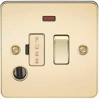 Fused spur solution in Flat Plate low profile metal design with matching fuse holder. - 13A rated- Switched- With neon indicator and flex outlet- Ultra low profile design with built in gasket- Certified to BS 1363-4- Minimum mounting box depth 25mmSpecification: Projection (mm): 2.5Min. Mounting Box Depth (mm): 25mmConstruction: Premium grade steelFinish: Polished BrassIP Rating: IP20Primary Voltage: 230V 50HzEarth Terminal: YesNeon Indicator: Yes - Manufacturers part number: FP6300FPB