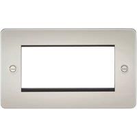 Flat Plate 4G Modular Faceplate - Brushed Chrome, Polished Chrome or Pearl Suitable for use with euro module inserts. Ideal for creating bespoke TV/DATA/HDMI/USB/TEL installations. Flat Plate low profile design Accepts four 25 x 50mm, or two 50 x 50mm euro module or a combination of both Ultra low profile design with built in gasket Minimum mounting box depth: dependent on euro module used Dimensions: H 87.5mm x W 148.5mm IP20 - Manufacturers part numbers: FP4GPL|Knightsbridge_FP4GPL|FP4GPL