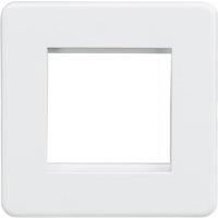 Suitable for use with euro module inserts. Ideal for creating bespoke TV/DATA/HDMI/USB/TEL installations. Flawless Screwless design - Accepts two 25 x 50mm , or a single 50 x 50mm euro module - Screwless low profile design with built in gasket - Minimum mounting box depth: dependent on euro module usedSpecification: Projection (mm): 4.3Construction: Premium grade steelFinish: Matt WhiteClass: IIP Rating: IP20Earth Terminal: Yes - Manufacturers part numbers: SFAV2GMW|SF2GMW