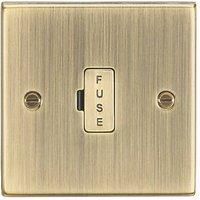 Fused Spur solution in square edge metal design with matching fuse holder. - 13A rated - Square edge design with built in gasket - Certified to BS 1363-4 - Minimum mounting box depth 25mmTechnical Specification:Projection (mm): 10.5Min. Mounting Box Depth (mm): 25mmConstruction: Premium grade steelFinish: Antique BrassIP Rating: IP20Primary Voltage: 230V 50HzEarth Terminal: YesTerminal: ScrewDimensions: Height: 89mmWeight: 0.17KgWarranty: 15 Years - Manufacturers part numbers: CS6AB|Knightsbridge_CS6AB|CS6AB