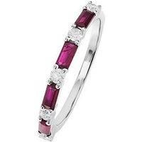 The Love Collection 9ct White Gold Ruby And 0.20ct Diamond Half Eternity Ring This stylish 9 carat white gold half eternity ring is set with baguette shape ruby and sparkling white diamonds. Available Sizes: I Metal Type: White gold Ring Size: I Ring Type: Gemstone Stone: Ruby Stone Colour: Ruby Stone Type: Gem