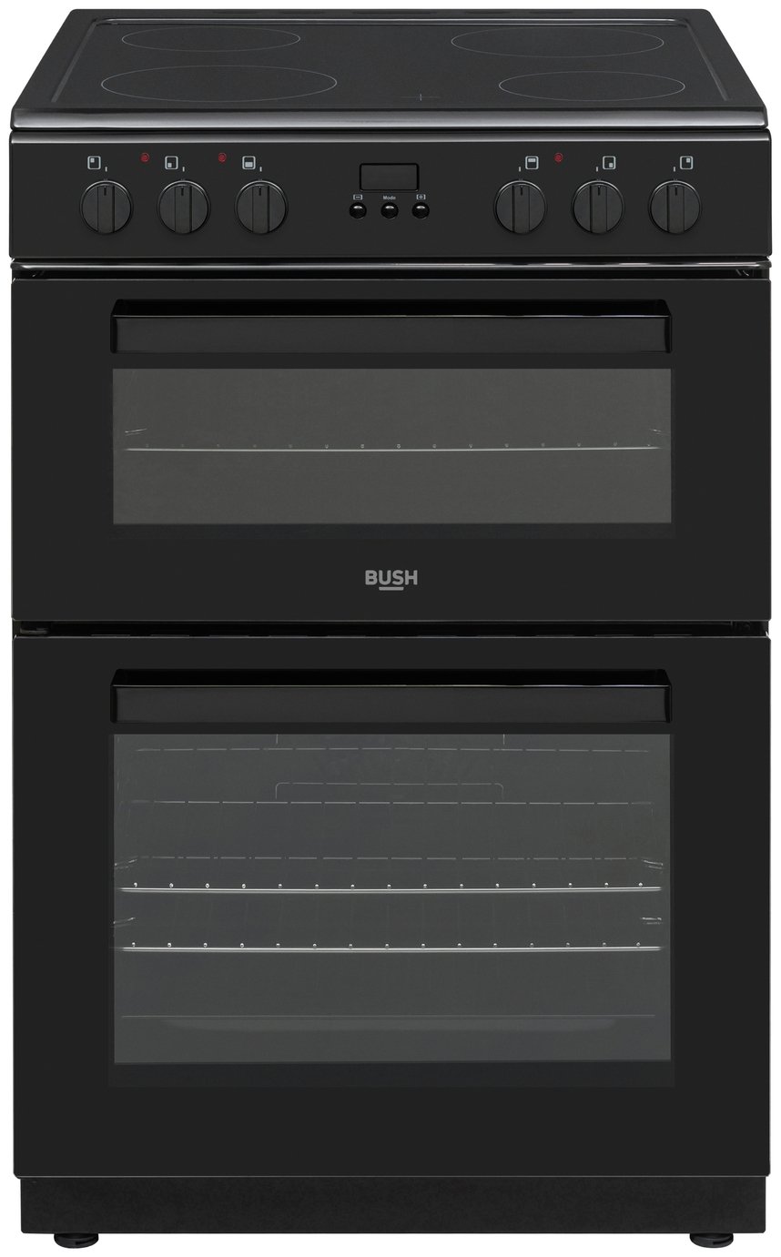 Get cooking with this Bush electric double oven and 4-ring ceramic hob. Youve everything you need in one handy appliance. Perfect for cooking a range of dishes. There is a grill and oven in the top cavity and below that a larger main fan oven, complete with a LED full programmer. It even has a defrost setting, ideal for those forgot to get out of the freezer, times. This electric oven has a fresh smart, bold black finish. Made with easy clean enamel interiors, this Bush oven is fuss free and simple to k...