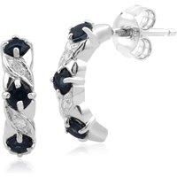 A pair of beautiful half hoop earrings crafted from 9ct white gold, featuring alternating round cut sapphire gemstones sparkling white diamonds. These earrings have a post and butterfly clip and are suitable for pierced ears only.Sapphire Information: Number of Stones: 6 Stone Shape: Round Stone Size: 2.30mm Carat Weight: 0.45ct Natural/Created: Natural sapphire Country of Origin: Australia diamond Information: Number of Stones: 4 Stone Shape: Round Stone Size: 0.90mm Carat Weight: 0.01ct Natural/Created: Natural diamond Country of Origin: India - Manufacturers part number: Gemondo_162E0238039