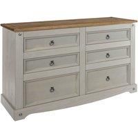 Fashioned from pine wood, the Corona Grey 3 plus 3 Drawer Wide Chest makes for an excellent addition to any room in need of a little extra storage space, offering six drawers for organising bits and pieces floating about the room.Please note, unfortunately we cannot deliver this item to the Channel Islands. - Manufacturers part number: 30412687