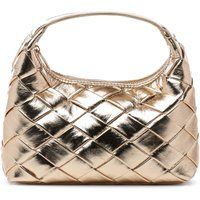 The Olevia Bag from Paradox London blends timeless style with a modern twist. Featuring a soft woven texture and curved silhouette, this mini shoulder bag is perfect for day-to-night wear. | Paradox London Women's Woven Faux Leather 'Olevia' Clutch Bag in Gold - Manufacturers part number: Paradox London_5055960699158