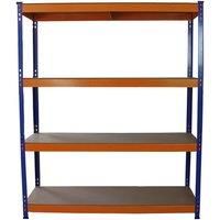 - 10 x Extra wide 150cm, blue and orange powder coated racking / shelving bays ideal for garages, warehouses, utility , sheds and workshops with 4 thick MDF shelves. 4 layers of powder coated paint maintain a high quality finish.