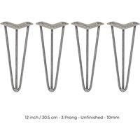 4 x Hairpin Legs / Hair Pin Set Furniture Desk Table 28" 3 Prong 10mm Raw Steel