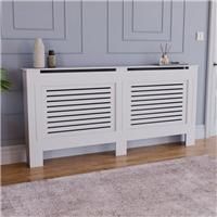 This extra-large Milton Radiator Cover in a white finish has a beautifully crafted design that will complement a variety of decor styles. Not only is this product perfect for covering your radiator, but it'll also add to the overall feel of your room, turning your radiator into a feature with its modern grill design. With chamfered edges, this strong and durable MDF wood cover features a very useful shelf on the top. Please note that this item requires self assembly. External Measurements: H 82 x W 172... - Manufacturers part number: 30948991