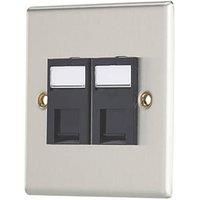 Contemporary slim profile RJ45 Cat6 data outlet in square-edged design. Suitable for creating networking points. High-quality, non-magnetic metal construction with anti-fingerprint lacquer coating. Raised Slim Profile Screwed Faceplate Requires 35mm Back Box Punch-Down Terminal Connections - Manufacturers part number: CON3191BSB