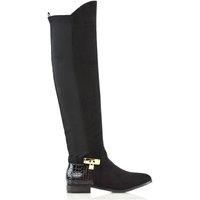 XY London Women's 'Bella' Flat Elasticated Over The Knee Boots With Zip Fastening in Jet Black | Size: 5