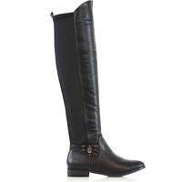 XY London Women's 'Bella' Flat Elasticated Over The Knee Boots With Zip Fastening in Black | Size: 6