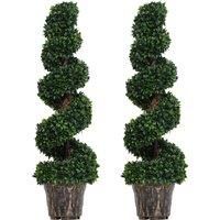 Breathe a unique and quirky lease of life into your home with this artificial tree from Outsunny. Sold in a set of two, each faux plant is presented in a tall spiral waved design for a unique and stand-out design which instantly brightens up your surroundings. Filled with cement to keep the plants upright, each pot is covered in a bronze-tone design for style, with them delivered fully assembled to place them where you want straight away. The easy way to inject greenery into your home with no upkeep req... - Manufacturers part number: 844265V01