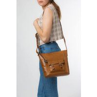 The stylish and functional 'Robyn' shoulder bag from Conkca London is crafted from natural leather that has a beautiful finish, adorned with metal fittings and an adjustable fabric lined leather strap. The zip-over top conceals the spacious main compartment complemented by two pockets, all lined with natural 100% cotton. Extra storage options are provided by a pocket on the front secured by two mock buckle magnetic clasps and a slip pocket on the rear, great for when on-the-go. | Conkca London Women's 'Robyn' Leather Shoulder Bag in Tan - Manufacturers part number: Conkca London_5056032720978