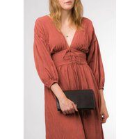 Handcrafted from genuine leather, the 'Cherish' clutch bag from Conkca London has a beautifully smooth finish. A magnetic press stud secures the fold-over top and conceals the natural and untreated 100% cotton lining. Additional storage space is provided by slip pockets on the interior of the accessory and a rear zipped pocket is perfect for on-the-go storage. Adorned with the iconic Conkca logo. | Conkca London Women's 'Cherish' Leather Clutch Bag in Black - Manufacturers part number: Conkca London_5056032771581