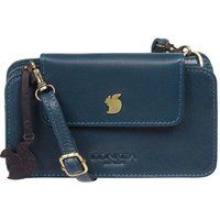 The 'Little Wonder' cross body clutch bag from Conkca London is handcrafted from multi-toned leather for a beautiful finish. A magnetic press-stud secured cover opens to reveal a compartment ideal for a smartphone. A zip-over top opens to reveal a second compartment that is perfect for your essential items and has three handy card slots. Lined with natural and untreated 100% cotton. It comes with an adjustable leather strap with a maximum drop length of 68cm, which is removable, converting the bag into a clutch bag. Adorned with the inimitable Conkca squirrel charm and Conkca logos. | Conkca London Women's 'Little Wonder' Leather Cross Body Clutch Bag in Blue - Manufacturers part number: Conkca London_5056032791831