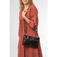 The 'Minnow' cross body clutch bag from Conkca London is handcrafted from multi-toned leather for a beautiful finish. A zip-over top opens to reveal a spacious main compartment with two slip pockets, lined with natural and untreated 100% cotton. Features a zipped pocket on the front, ideal for on-the-go storage. Comes with an adjustable leather strap with a maximum drop length of 70cm. The strap is removable, converting the bag into a clutch bag. Adorned with the inimitable Conkca squirrel charm and Conkca logos. | Conkca London Women's 'Minnow' Leather Cross Body Clutch Bag in Black - Manufacturers part number: Conkca London_5056032792005
