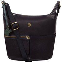 The 'Little Kristin' from Conkca London is handcrafted from genuine leather for a beautiful finish and is a smaller version of the original 'Kristin' shoulder bag. Dual external pouches and zipped pockets provide ample on-the-go storage and a zip-over top opens to reveal the spacious central compartment, lined with natural and untreated 100% cotton. Features two interior pockets ideal for small essentials and a canvas strap with a maximum drop length of 70cm. Adorned with the inimitable Conkca squirrel charm and embossed Conkca logo. | Conkca London Women's 'Little Kristin' Plum Leather Shoulder Bag in Navy - Manufacturers part number: Conkca London_5056032792708