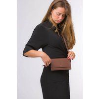 The 'Saffron' cross body clutch bag from the Pure Luxuries Marylebone collection is handcrafted from high-quality, genuine Nappa leather with a natural super-soft touch. The minimalistic fold-over top is secured by a gold-coloured magnetic press stud. The interior is lined with 100% cotton and features slip pockets and card slots to help keep an organised bag. Comes with an adjustable slim leather strap with a maximum drop length of 65cm. The strap is also removable by releasing the two interior press studs, transforming the bag into a clutch bag. Furnished with gold-coloured metal fittings. The minimalist Pure Luxuries logo is embossed in gold foil for a beautifully simple finishing touch. | Pure Luxuries London Women's 'Saffron' Nappa Leather Cross Body Clutch Bag in Tan - Manufacturers part number: Pure Luxuries London_5056032794764