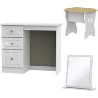 This Berryfield vanity set is all you need to set up a stunning dressing table in your bedroom, featuring a classic design which will look lovely in any space. Each piece boasts scratch resistant veneer which guarantees durability, as well as a robust design which has been built to last. When assembled together, the dressing table, stool and mirror create a beautiful configuration which will make priming for your day or for an evening out a continual pleasure. There is plenty of storage in the dressing ...