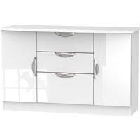 This contemporary sideboard is a stylish storage solution for a modern living space. Boasting sleek lines and a glossy finish, this sideboard comprises three drawers, a double doored compartment with a strong shelf inside, providing plenty of space to store a variety of items. Topped with a generous flat surface you can use this sideboard to display and store taller items, making it perfect as a bedside cabinet as well. This attractive sideboard is finished with grey metal fittings, giving it an overall...
