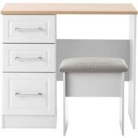 This stylish 2 Piece Set containing a Vanity and Stool is hand made to order and fully assembled at our UK factory. Available on quick delivery lead times, each item will delivered, fully assembled directly to your home by specialist 2 man teams. Made with high quality scratch resistant materials, strong metal fixings, and finished with sleek handles and knobs. Drawers are beautifully lined and run smoothly on strong metal runners.Features and Benefits Fully Assembled- Convenient and hassle free.Scratch...