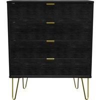 Hirato Ready Assembled 4 Drawer Chest Black Gold Metal Hairpin Legs