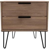 Hirato Ready Assembled 2 Drawer Lamp Table Carini Walnut Black Metal Hairpin Legs