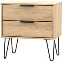 Hirato Ready Assembled 2 Drawer Lamp Table Nebraska Oak Black Metal Hairpin Legs