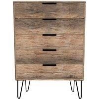 Hirato Ready Assembled 5 Drawer Chest Vintage Oak Black Metal Hairpin Legs