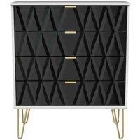 This wide 4 drawer chest of drawers is practical and stylish. Perfect for any home as a free standing storage unit. Say hello to contemporary cool with the Diamond range, with distinctive patterned drawers and a variety of colour options available to compliment any interior design. Gold metal handles and sturdy hairpin legs complete the storage solution. All our furniture is made in the United Kingdom, to the highest quality. It is delivered direct to your location of choice by one of our two man delive...