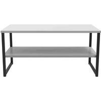 This large modern coffee table includes a full size lower shelf for added parcticality. Features Black metal Sleigh style legs with matching handles and a scratch resistant finish. All our furniture is manufactured to order in the UK and delivered to your door fully assembled. Features: Fully Assembled UK Manufactured Scratch Resistant Linen Effect Lined Drawers Smooth Metal Runners Distinctive Metal Sleigh Legs Sleek Metal Handles Specifications: Dimensions: H:40.0 x W:100.0 x D:50.0 cm Colour: Grey Mo...
