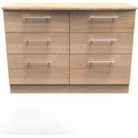 This double width 6 drawer chest of drawers is practical and stylish. Perfect for any home as a free standing storage unit. The elegant, stylish Sherwood range is available in a range of durable scratch resistant natural wood or matt finishes. With metal T-Bar handles on all doors and drawers. All drawers come with long lasting metal drawer runners and a linen effect interior. All our furniture is made in the United Kingdom, to the highest quality. It is delivered direct to your location of choice by on...