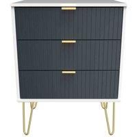 This 3 drawer bedside cabinet is wider than normal for added practicality. Perfect for any bedside or as a free standing storage unit. A modern and distinctive range. Named for the unique "Linear" patten of the drawer and door fronts. Also features Gold Metal Handles and Gold Hairpin Legs. Comes in a wide range of colours including eye cathching two tone colour combinations. All our furniture is made in the United Kingdom, to the highest quality. It is delivered direct to your location of choice by on...