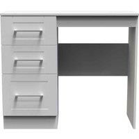 This practical 3 drawer narrow desk/vanity is perfect for any bedroom or office. A matching stool and mirror (in 2 sizes) are also available. Wood grain effect, panelled design, recessed fronts and chrome handles, the York Range is a beautifully elegant collection. With this range you have the freedom to choose from a wide range of furniture configurations, allowing you to create the perfect combination to optimise your storage space. All our furniture is made in the United Kingdom, to the highest quali...