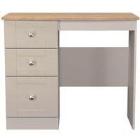 This practical 3 drawer narrow desk/vanity is perfect for any bedroom or office. A matching stool and mirror (in 2 sizes) are also available. Wood grain effect, panelled design, recessed fronts, contrasting wood top and chrome handles, the Sussex Range is a beautifully elegant collection. With this range you have the freedom to choose from a wide range of furniture configurations, allowing you to create the perfect combination to optimise your storage space. All our furniture is made in the United Kingd...
